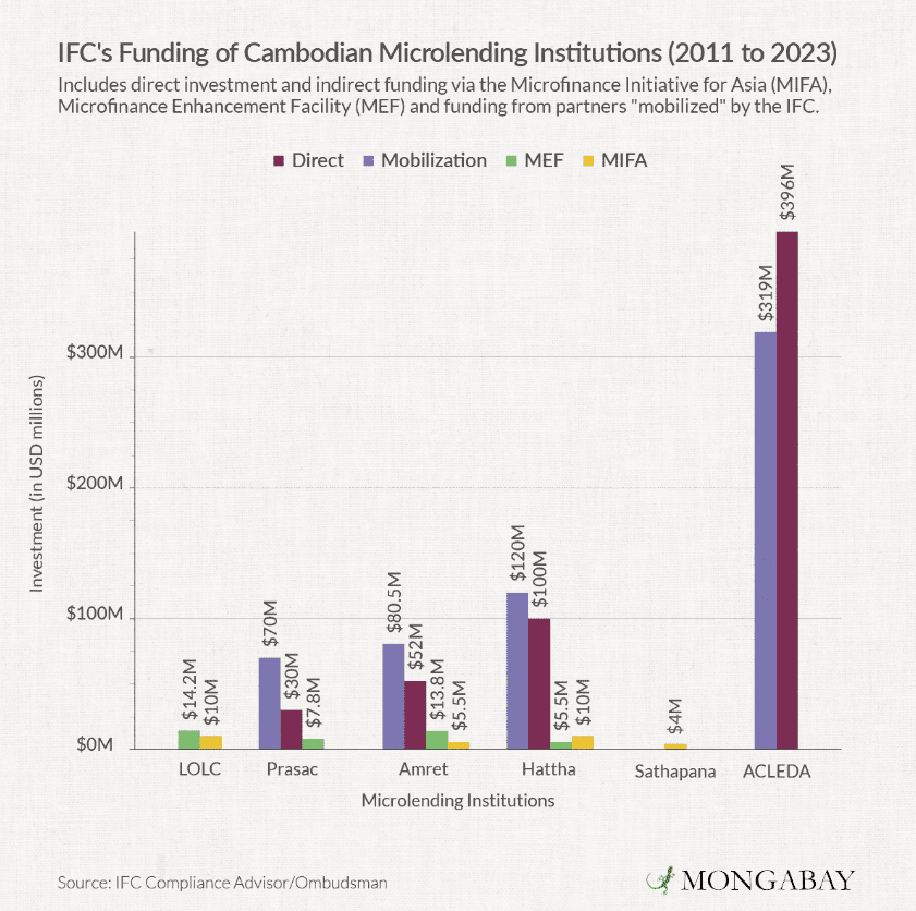 នាខែសីហា អង្គការឃ្លាំមើលផ្ទៃក្នុងរបស់ សាជីវកម្មហិរញ្ញវត្ថុអន្តរជាតិ (IFC) បានបើកការស៊ើបអង្កេតលើការវិនិយោគរបស់ខ្លួននៅក្នុងគ្រឹះស្ថានមីក្រូហិរញ្ញវត្ថុធំជាងគេចំនួន៦របស់កម្ពុជា បន្ទាប់ពីមានការចោទប្រកាន់ ថាគ្រឹះស្ថានទាំងនោះបានរំលោភលើគោលការណ៍តឹងរ៉ឹងរបស់ IFC ជាច្រើនឆ្នាំ រួមទាំងការការពារសិទ្ធិសហគមន៍ជនជាតិដើមភាគតិចផងដែរ។