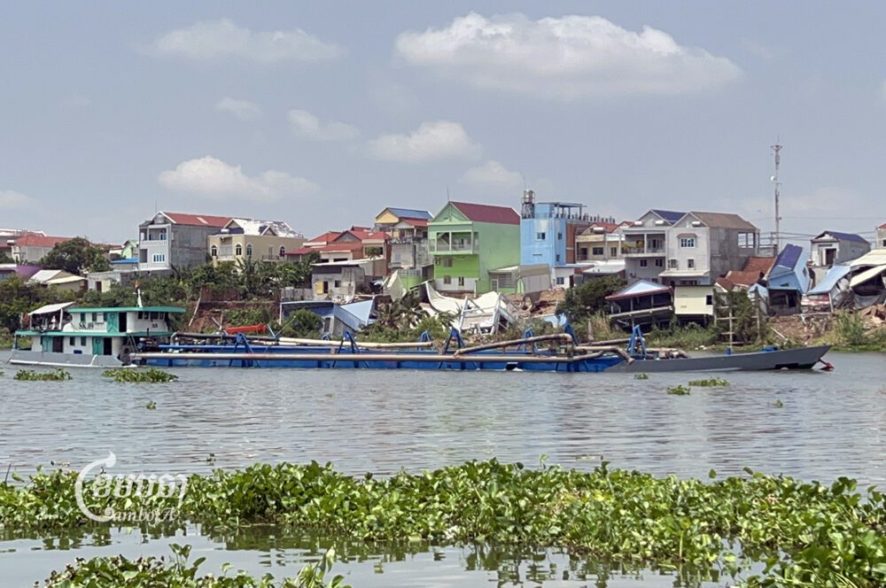 ប្រែសម្រួលពីអត្ថបទភាសាអង់គ្លេស៖ Dozens of Houses Destroyed After Bassac River Bank Collapses Following Years of Sand Dredging