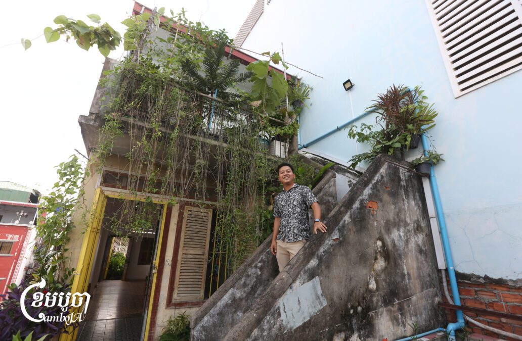លោក ហែម ច័ន្ទសុភ័ក្រ សហស្ថាបនិកសហគមន៍ «ផ្ទះចាស់» បើកហាងលក់ផ្កា និងកាហ្វេរួមទាំងតួបលក់វត្ថុអនុស្សាវរីយ៍ នៅអគារចាស់មួយដែលត្រូវបានកសាងឡើងនៅឆ្នាំ១៩៥៣ ដែលមានទីតាំងក្បែរមាត់ទន្លេរាជធានីភ្នំពេញ។