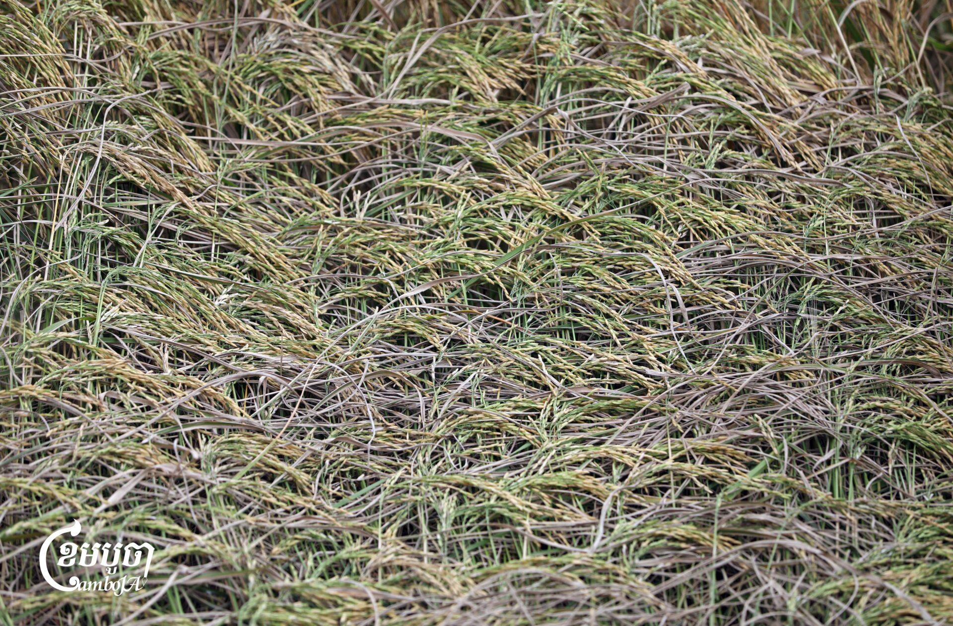 កសិករកំពុងប្រមូលផលស្រូវដែលទើបច្រូតកាត់ថ្មីៗនៅជាយក្រុងភ្នំពេញ នៅថ្ងៃទី១១ ខែវិច្ឆិកា ឆ្នាំ២០២៥។ មនុស្សជាច្រើននៅតែរងផលប៉ះពាល់ដោយសារការធ្លាក់ចុះនៃតម្លៃ ដែលបានធ្លាក់ចុះមកត្រឹមប្រហែល ៦០០ ទៅ ៩០០ រៀលក្នុងមួយគីឡូក្រាម។ រដ្ឋាភិបាលបានចាក់បញ្ចូលថវិកាចំនួន ៤០ លានដុល្លារតាមរយៈ ARDB ដើម្បីជួយរោងម៉ាស៊ីនកិនស្រូវទិញស្រូវ និងដំណាំផ្សេងៗទៀតក្នុងតម្លៃសមរម្យ។ (ខេមបូចា/ព្រីង សំរាំង)