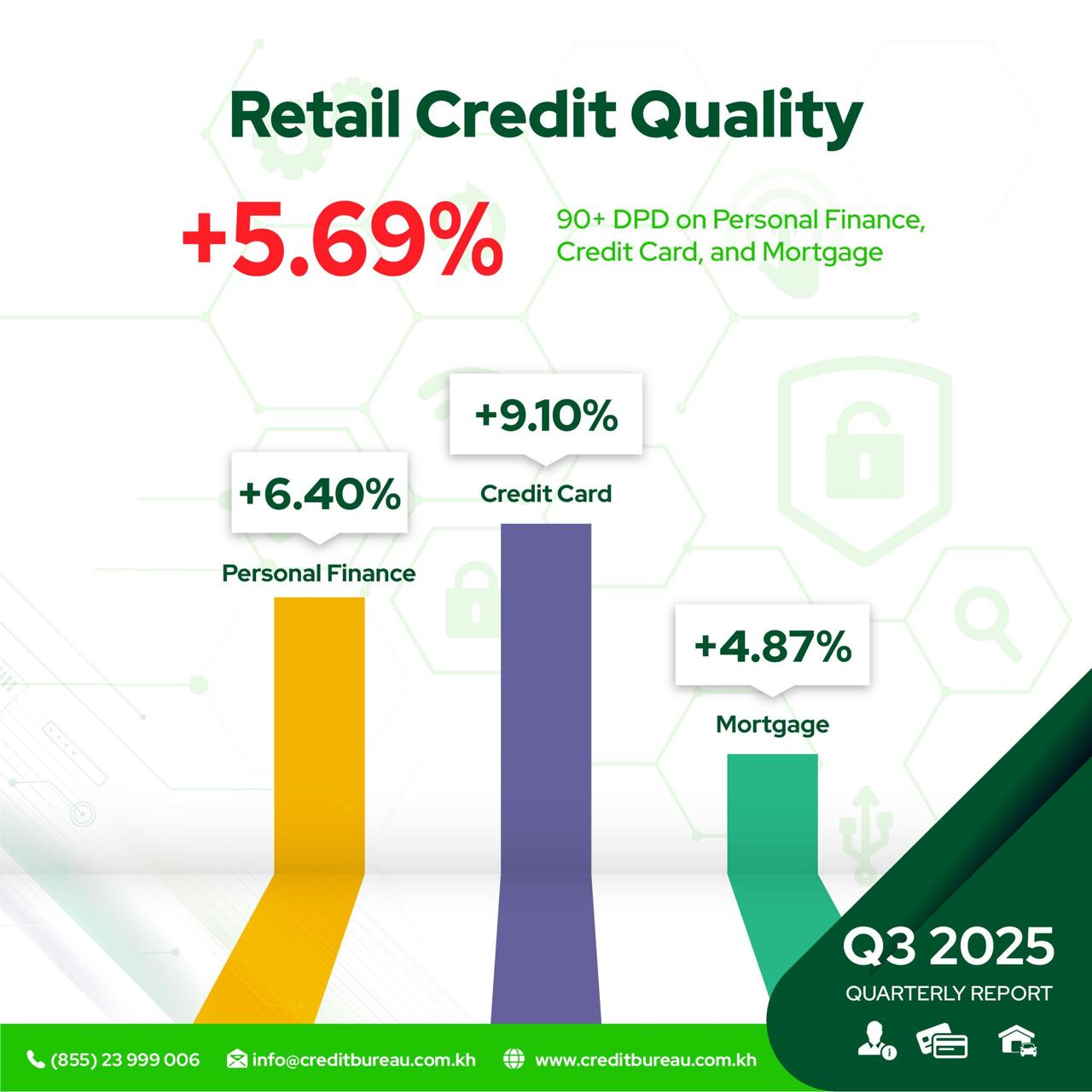 តាមរយៈរបាយការណ៍របស់ ក្រុមហ៊ុន Credit Bureau (Cambodia) Co., Ltd (CBC) ចេញផ្សាយនាដើមខែវិច្ឆិកានេះ បង្ហាញថា គុណភាពនៃឥណទានបុគ្គល ដែលវាស់វែងដោយសមាមាត្រនៃឥណទានសងយឺតលើសពី 90 ថ្ងៃ (90+DPD) បានកើនឡើងបន្តិច ដែលឆ្លុះបញ្ចាំងពីការលំបាកក្នុងការសងបំណុលរបស់ប្រជាពលរដ្ឋ។